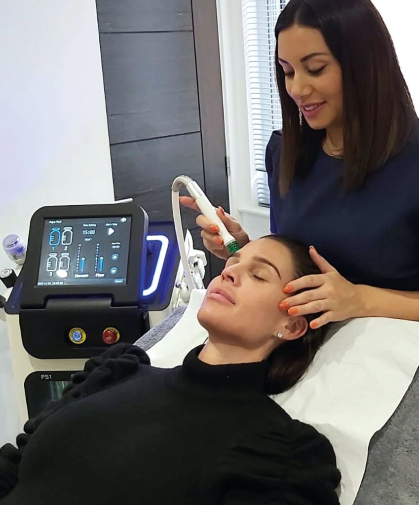 | Diamond Tip Micro Dermabrasion plus Mesotherapy | This gently combines abrasion and mesotherapy to remove dead skin cells layer by layer and transdermally infuses a cocktail of vitamins and peptides into the dermis without needles. It improves collagen and elastin to firm and tighten and give you younger-looking skin. | |